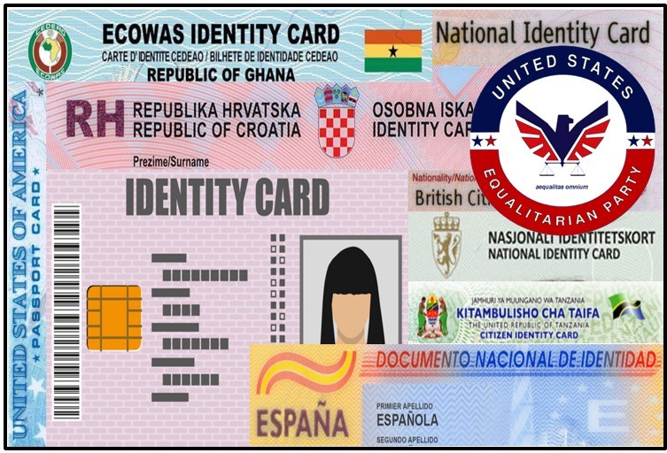 The United States Equalitarian Party (USEP) favors the use of a financialy untied national identity card (NIC). Equalitarians believe a NIC can significantly reduce fraud, waste, and abuse caused by political mismanagement of citizen tax dollars. The card could also be used to verify age of majority, citizenship, immigration status, emergency medical information (e.g., blood type, organ donor status, allergies etc.), deserved receipt of government aid, and the validity of a person’s state and federal licensing status (e.g., drivers, firearms, heavy equipment, etc.).